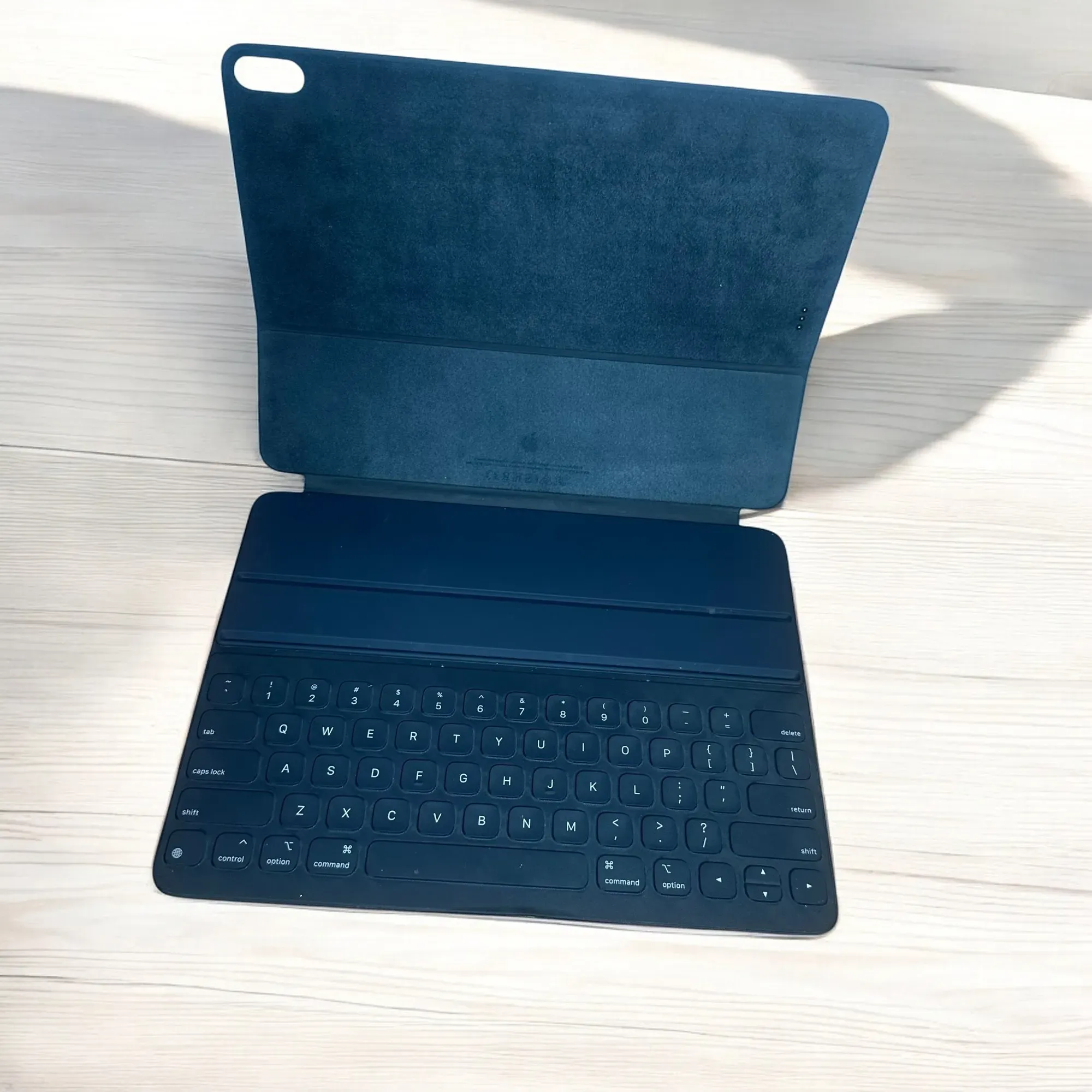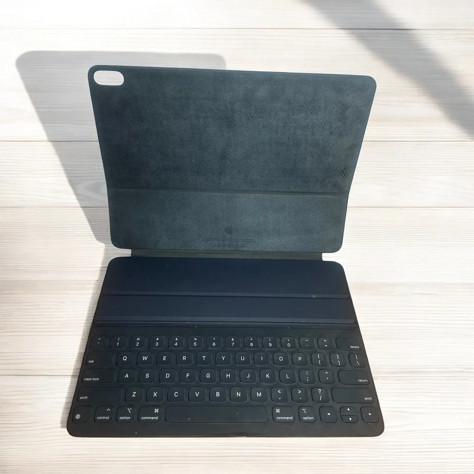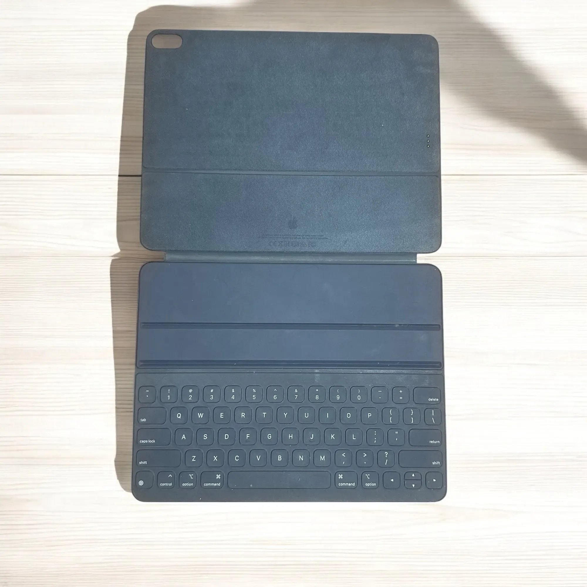 "El Smart Keyboard Folio es un teclado de tamaño estándar cuando lo necesitas y una funda para proteger ambos lados del dispositivo cuando lo cierras. Además, puedes ajustarlo en dos ángulos de visión y no hace falta cargarlo ni enlazarlo. Simplemente lo acoplas y te pones a escribir. Compatible iP...